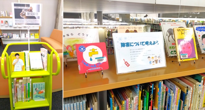 その他、点字付き絵本など、誰でも楽しめるバリアフリー絵本も併せて展示。